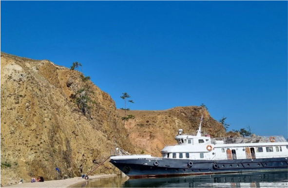 6.00. Переход к мысу Шартлай, « берегу бурых медведей» - 3,5 ч., прогулка по берегу, фото живописных склонов Байкальского хребта. Переход в пролив Малое Море к мысу Хобой острова Ольхон – 4 ч., фото с теплохода северной оконечности острова Ольхон. Переход вдоль острова Ольхон мимо скального ансамбля Саган-Хушун (Три брата) к мысу Бурхан – 2,5 ч. Пешая прогулка к Шаман-Скале (одно из самых живописных мест на Байкале), фото, отдых на песчаном пляже Сарайского залива, желающие могут посетить художественную лавку в пос. Хужир и купить омуль местного приготовления. Ночёвка на рейде. (160 км. пути)