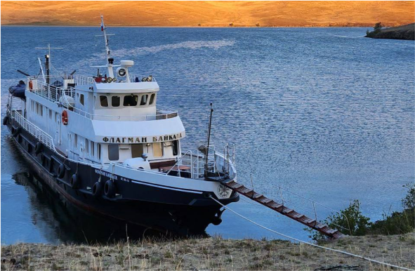 Переход до мыса Мужинай (местное озеро здесь отделено от Байкала 15 метровой галечной косой) 1 ч., прогулка по галечной косе, рыбалка с берега «на кораблик», рыбалка в озере на щуку, костер на берегу, рыба на рожнах, баня на теплоходе, ночёвка у берега. (80 км. пути)
