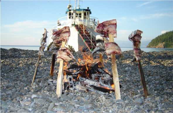 17.30 - переход в падь Сенную, посещение бревенчатой бани на берегу Байкала, прощальный костёр на берегу (150 км. пути)